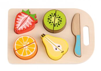 Το σετ περιλαμβάνει 1 δίσκο, 1 μαχαίρι και 5 φρούτα τα οποία κόβονται στη μέση (πορτοκάλι, λεμόνι, ακτινίδιο, φράουλα και μήλο). Οι λεπτομέρειες στην αφή προσθέτουν ένα πιο ρεαλιστικό παιχνίδι.