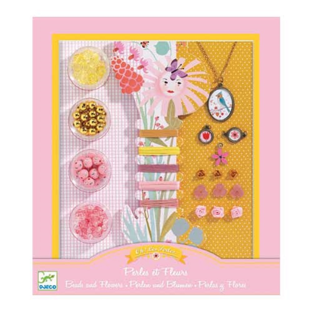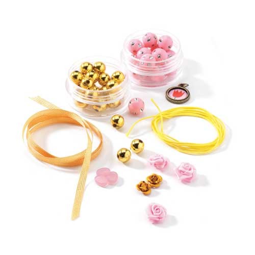 Σετ κατασκευής κοσμημάτων με πέρλες από την εταιρεία Djeco. Δημιουργήστε όμορφα και πολύχρωμα κοσμήματα με έμπνευση από τα λουλούδια, συνδυάζοντας πέρλες, κορδέλες και διακοσμητικά στοιχεία της επιλογής σας. Το σετ περιλαμβάνει ποικιλία από πέρλες σε αποχρώσεις του κίτρινου, χρυσού και ροζ, ένα έτοιμο για χρήση εικονογραφημένο μενταγιόν, ελαστικά κορδόνια και κορδέλες σε διάφορα χρώματα και τέλος, άλλα μεταλλικά και θεματικά διακοσμητικά στοιχεία για ξεχωριστές δημιουργίες. Οι αναλυτικές οδηγίες βήμα προς βήμα, θα βοηθήσουν να δημιουργήσετε τα κοσμήματα των ονείρων σας.