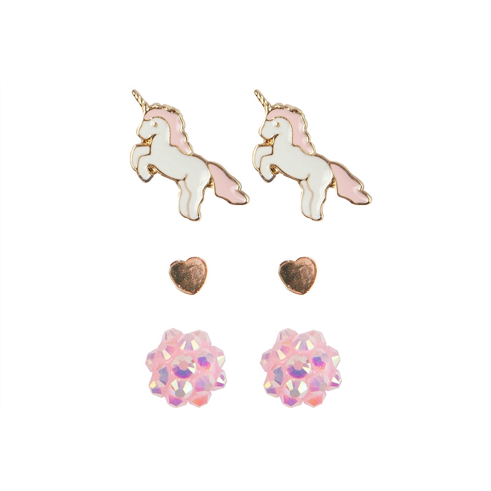 Great Pretenders Σετ σκουλαρίκια Λουλούδι – Καρδιά – Μονόκερος (3 ζεύγη)