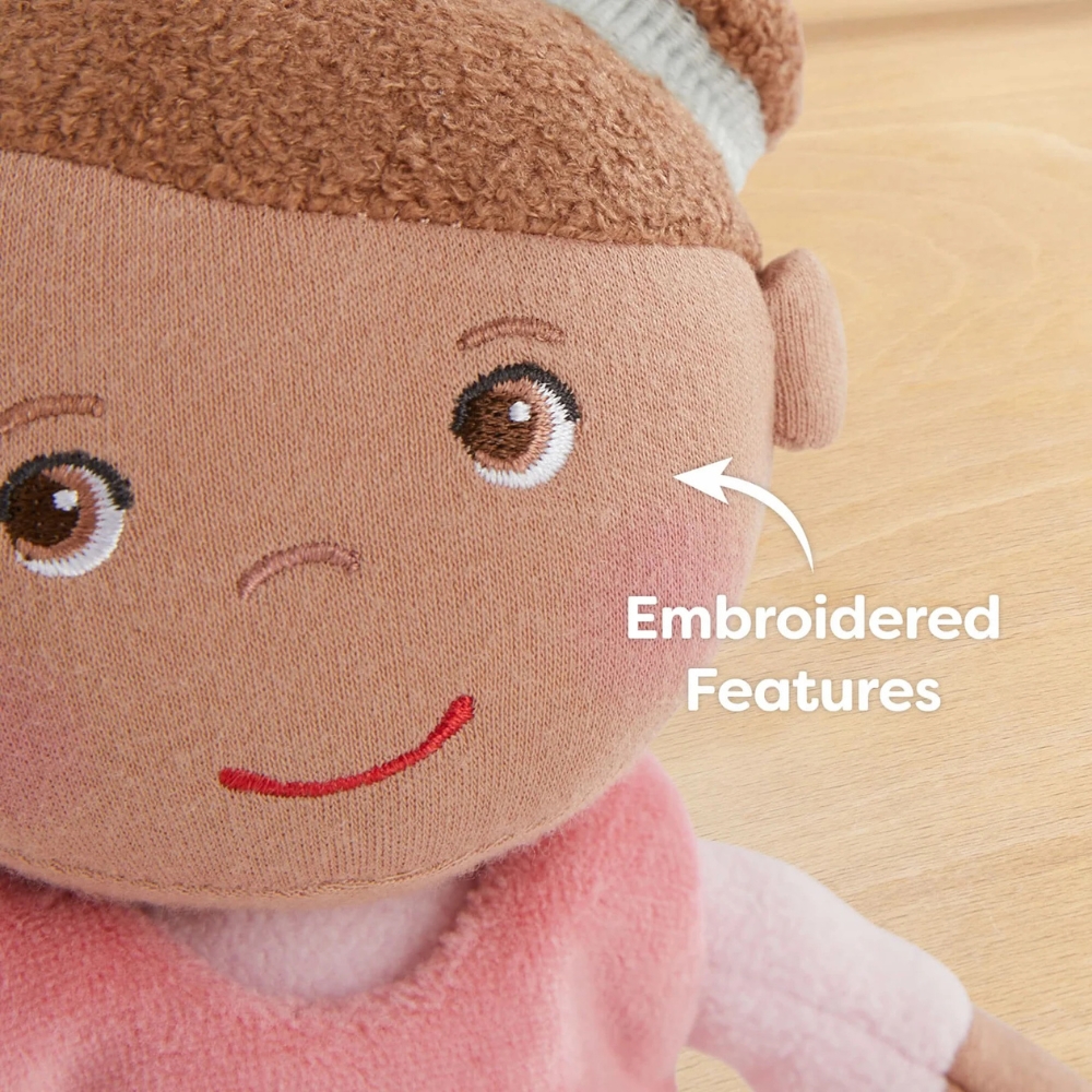 Μια κλασική, γλυκιά κούκλα αγκαλιάς που συνοδεύει το παιδί στα πρώτα χρόνια, προσφέροντας παρηγοριά, οικειότητα και παιχνίδι.