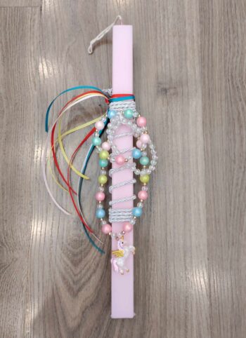 Πασχαλινή λαμπάδα διακοσμημένη με ένα στρογγυλό καδράκι με μπάλα ποδοσφαίρου και έναν ποδοσφαιριστή.