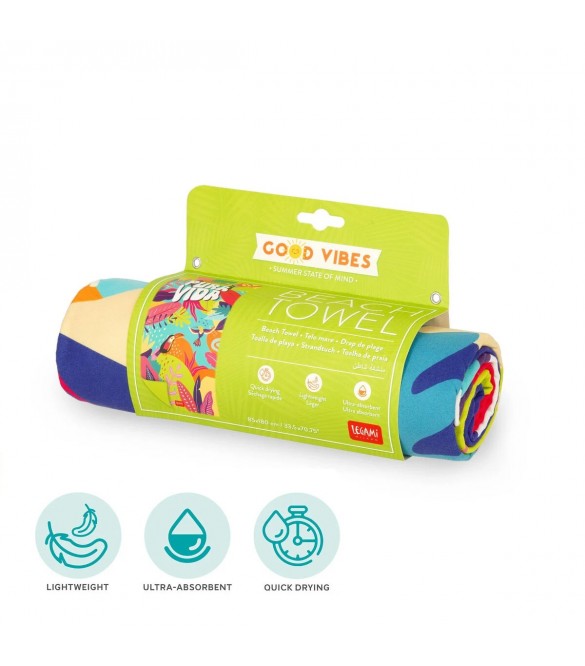 Διεκδικήστε τον χώρο σας στην παραλία με στυλ με την πετσέτα παραλίας Legami – Pura Vida. Όσο πρακτική όσο και κομψή, η πετσέτα είναι συμπαγής, ελαφριά και διπλής όψης, επομένως δεν θα είναι πολύ για να τη μεταφέρετε. Γρήγορο στέγνωμα και εξαιρετικά απορροφητικό, θα μπορείτε να κάνετε ηλιοθεραπεία, να χαθείτε στο καλοκαιρινό σας διάβασμα και να απολαύσετε το καλοκαίρι. Διαθέτει διασκεδαστική εκτύπωση στη μία πλευρά και μπλοκ χρώματος στην άλλη.