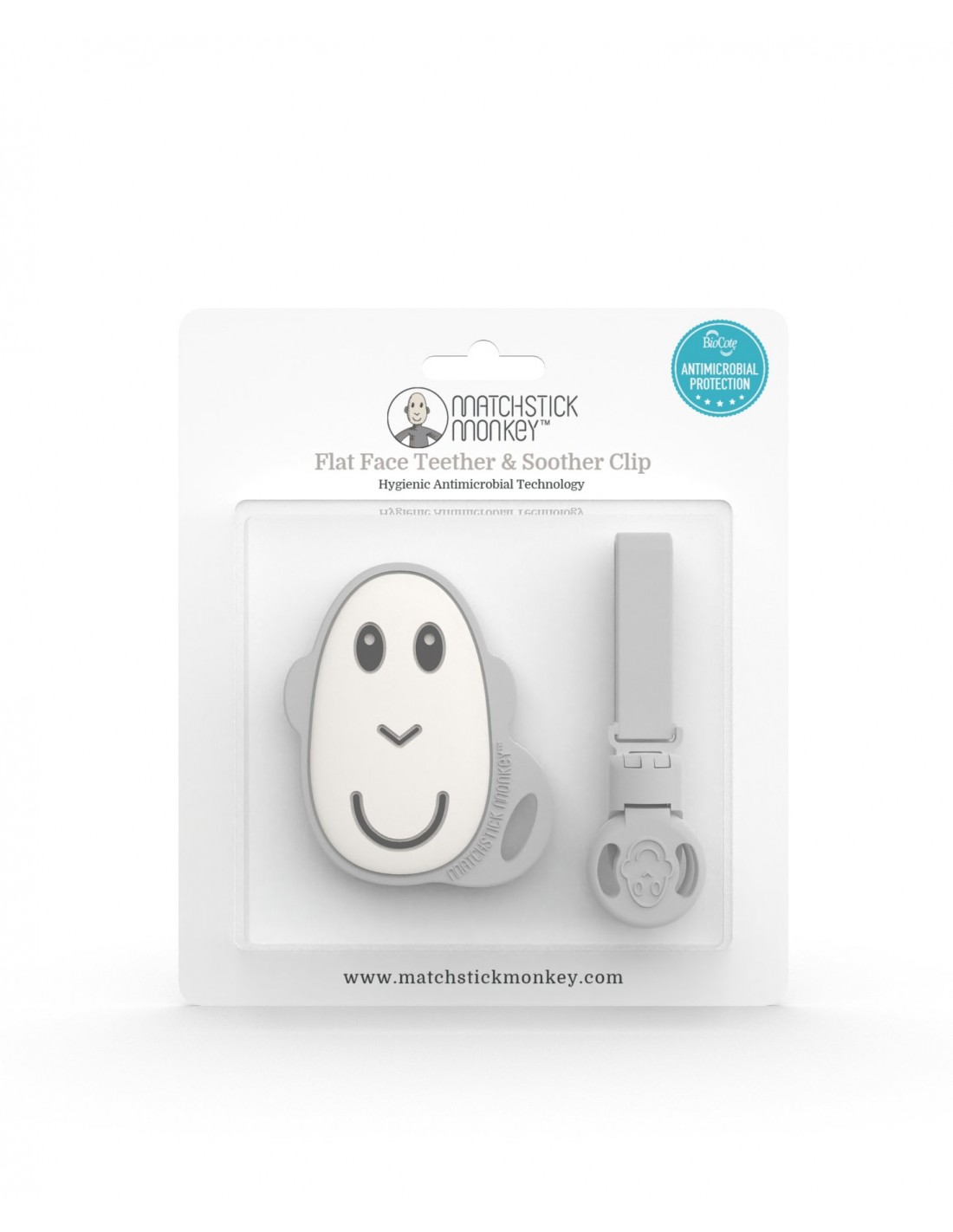 Μασητικό & Κλιπ Γκρι – SOOTHER CLIP & FLAT MONKEY TEETHER COOL GREY