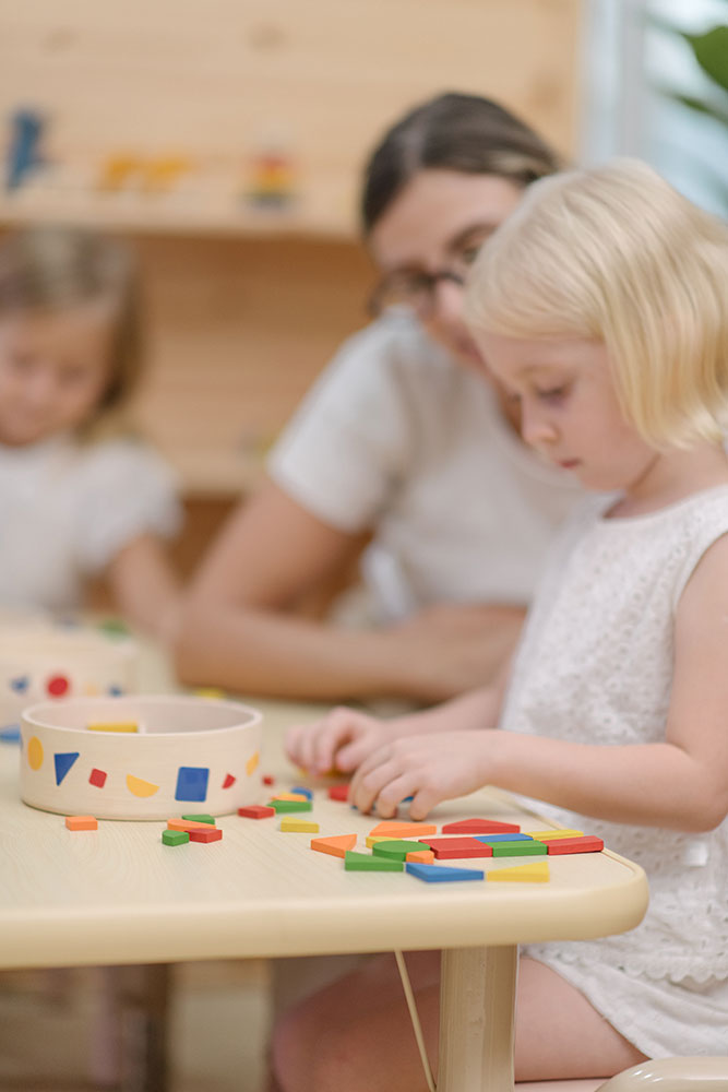 Ένα ανοιχτού τύπου παιχνίδι λογικής Montessori που ενθαρρύνει τη δημιουργικότητα και την επίλυση προβλημάτων καθώς τα παιδιά συνδυάζουν ξύλινα γεωμετρικά σχήματα για να δημιουργήσουν εντυπωσιακές φράκταλ εικόνες και μοτίβα. Καθώς εξερευνούν σχέσεις μεταξύ σχήματος, μεγέθους και χρώματος, αναπτύσσουν τον συντονισμό χεριού-ματιού και τις λεπτές κινητικές δεξιότητες. Η ελεύθερη φύση της δραστηριότητας προάγει τη λογική σκέψη, την ικανότητα ακολουθίας και τον πειραματισμό μέσα από δοκιμή και λάθος. Η συσκευασία λειτουργεί και ως κουτί αποθήκευσης για εύκολη οργάνωση και τακτοποίηση. Το σετ περιλαμβάνει: 45 ξύλινα γεωμετρικά κομμάτια (9 κομμάτια σε κάθε χρώμα: κόκκινο, μπλε, πράσινο, κίτρινο και πορτοκαλί).