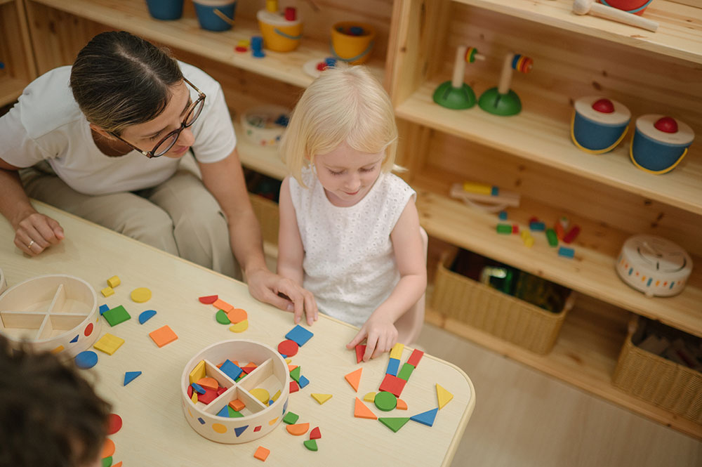 Ένα ανοιχτού τύπου παιχνίδι λογικής Montessori που ενθαρρύνει τη δημιουργικότητα και την επίλυση προβλημάτων καθώς τα παιδιά συνδυάζουν ξύλινα γεωμετρικά σχήματα για να δημιουργήσουν εντυπωσιακές φράκταλ εικόνες και μοτίβα.