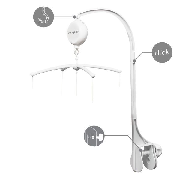 Το μόμπιλε της BabyOno θα προσφέρει στο μωράκι σας ηρεμία και θα το βοηθήσει να αναπτυχθεί. Τα αιωρούμενα ζωάκια-παιχνιδάκια προσελκύουν την προσοχή του μωρού, ενώ ο χαλαρωτικός του ήχος το νανουρίζει.