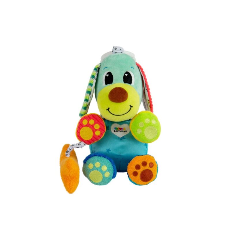 Το παιχνιδιάρικο κουτάβι γαβγίζει, όταν πιέζετε τη μύτη του και ακούγεται σαν κουδουνίστρα, όταν κουνιέται. Διαθέτει φωτεινά χρώματα που βοηθούν στην τόνωση της οπτικής αντίληψης. Οι διαφορετικές υφές και οι ήχοι τριξίματος και κροταλίσματος αναπτύσσουν τις αισθήσεις της αφής και της ακοής.