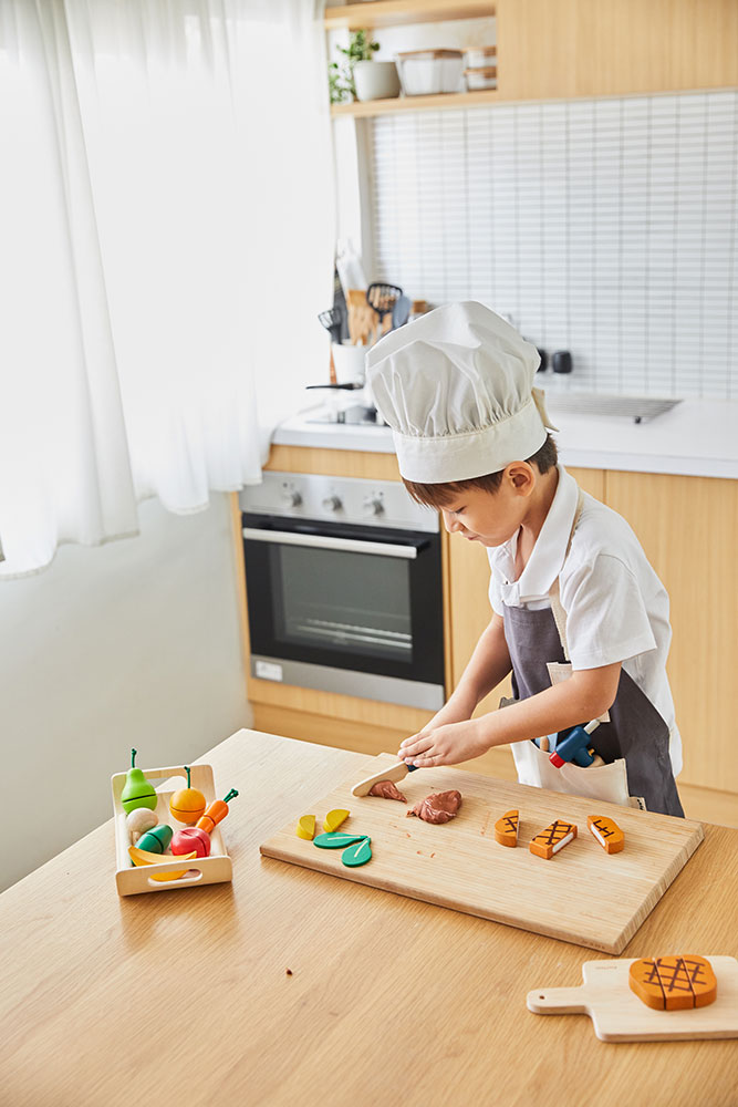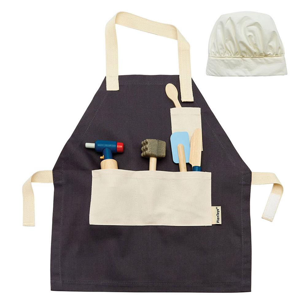 Μυήστε τα παιδιά στη χαρά της μαγειρικής! Το σετ σεφ περιλαμβάνει εργαλεία μαγειρικής, σχεδιασμένα για μικρά χεράκια με μεγάλη όρεξη για φαγητό! Αυτό το σετ περιλαμβάνει 1 ρυθμιζόμενη ποδιά, 1 ρυθμιζόμενο καπέλο σεφ, 1 φλόγιστρο με σκανδάλη, 1 σπάτουλα, 1 μαχαίρι, 1 κουτάλι δοκιμής και 1 σφυράκι κρέατος. Επεκτείνετε αυτό το σετ με άλλα μαγειρικά σκεύη της PlanToys καθώς ένας νεαρός σεφ προσπαθεί να ανακαλύψει όλες τις δυνατότητες της μαγειρικής.