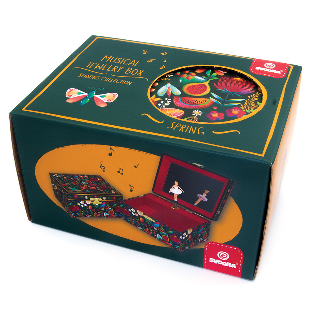 Μουσικά κουτιά Μπιζουτιέρες ‘Seasons’ της εταιρίας Svoora! Ο ιδιαίτερος σχεδιασμός τους καθώς και ο μουσικός μηχανισμός με την μπαλαρίνα, κάνουν αυτά τα μουσικά κουτιά τόσο ξεχωριστά! Διαθέτουν ευρύ καθρέφτη για καλύτερη θέαση και ξεχωριστή θήκη για δαχτυλίδια στο εσωτερικό για αποθήκευση περισσότερων αντικειμένων. Ανανεωμένη εμφάνιση με UV εκτύπωση έντονων μοτίβων, εμπνευσμένων από τις ομορφότερες εποχές του χρόνου, την Άνοιξη και το Καλοκαίρι.