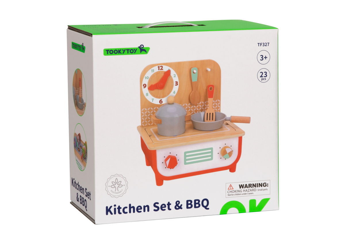 Αυτό το ξύλινο σετ κουζίνας & BBQ αποτελεί κλασικό και διαχρονικό παιχνίδι μίμησης ρόλων που ενθαρρύνει τις κοινωνικές δεξιότητες του παιδιού και καλλιεργεί τη φαντασία του.