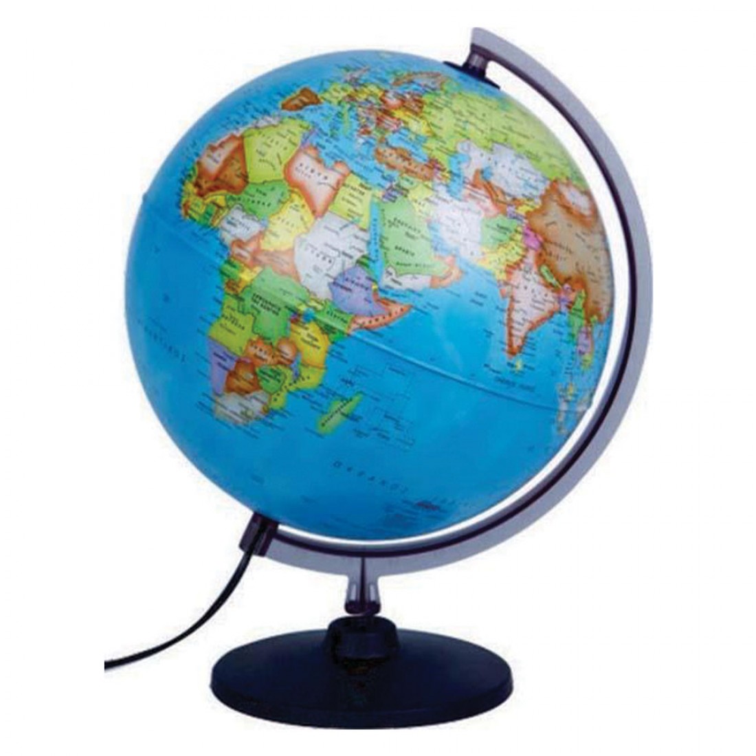 Φωτιζόμενη υδρόγειος σφαίρα – παγκόσμιος χάρτης με ελληνικές περιγραφές. Διαθέτει λάμπα οικονομίας. Περιστρέφεται χειροκίνητα. Είναι ιδανική για το μαθητή και το δάσκαλο. Μπορεί να χρησιμοποιηθεί και σαν φωτιστικό. Εκτός από τον εκπαιδευτικό τους χαρακτήρα είναι ένα πολύ όμορφο δώρο για μικρούς και μεγάλους. Με διάμετρο 25εκ, πλαστική βάση και φωτιζόμενη.